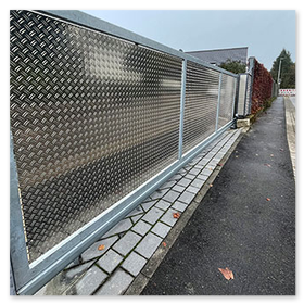 Die Torfüllung aus Aluminium-Riffelblech wurde speziell nach Kundenwunsch gefertigt und sorgt für optimalen Sichtschutz und modernes Design.
