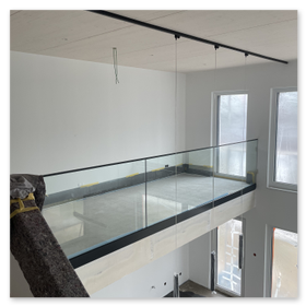 Wir haben ein Ganzglasgeländer montiert sowie Handläufe und Mauerabdeckungen aus gepulvertem Stahl, die sich nahtlos in das Gesamtkonzept einfügen.