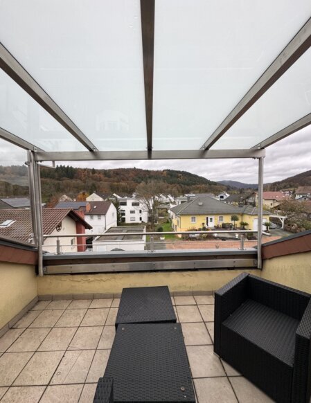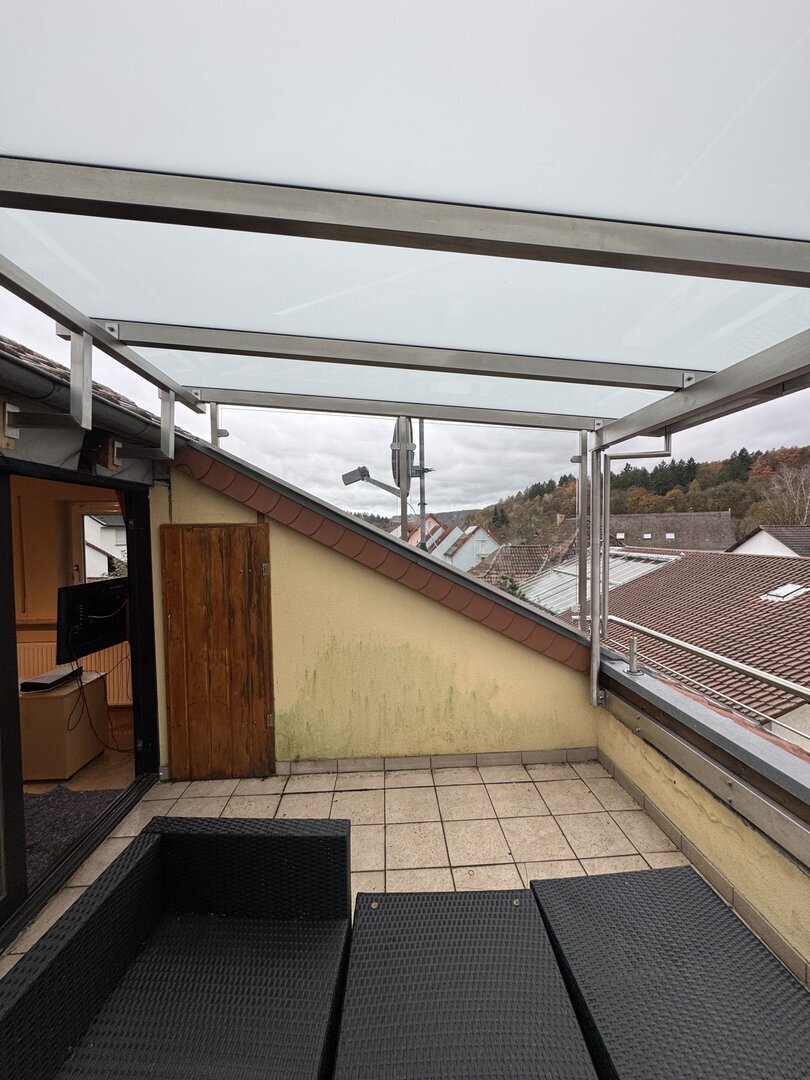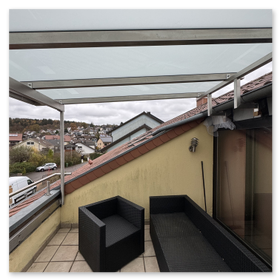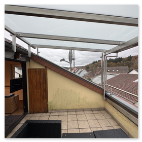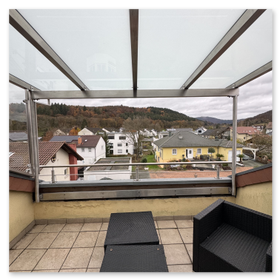 Familie S. aus Wiesenbach erhielt eine elegante Balkonüberdachung im 2. Stock.
