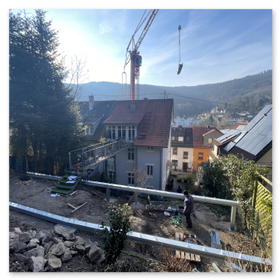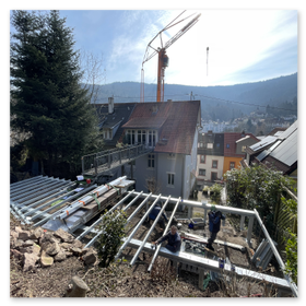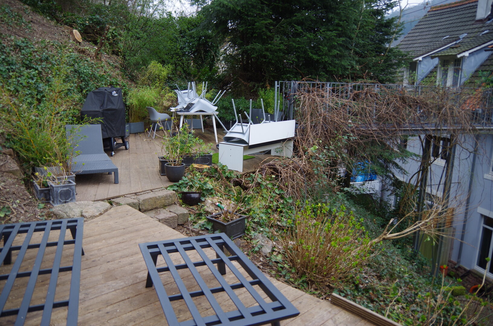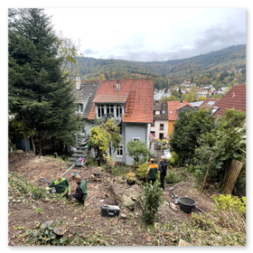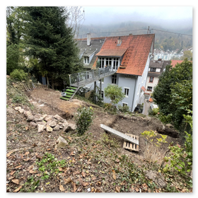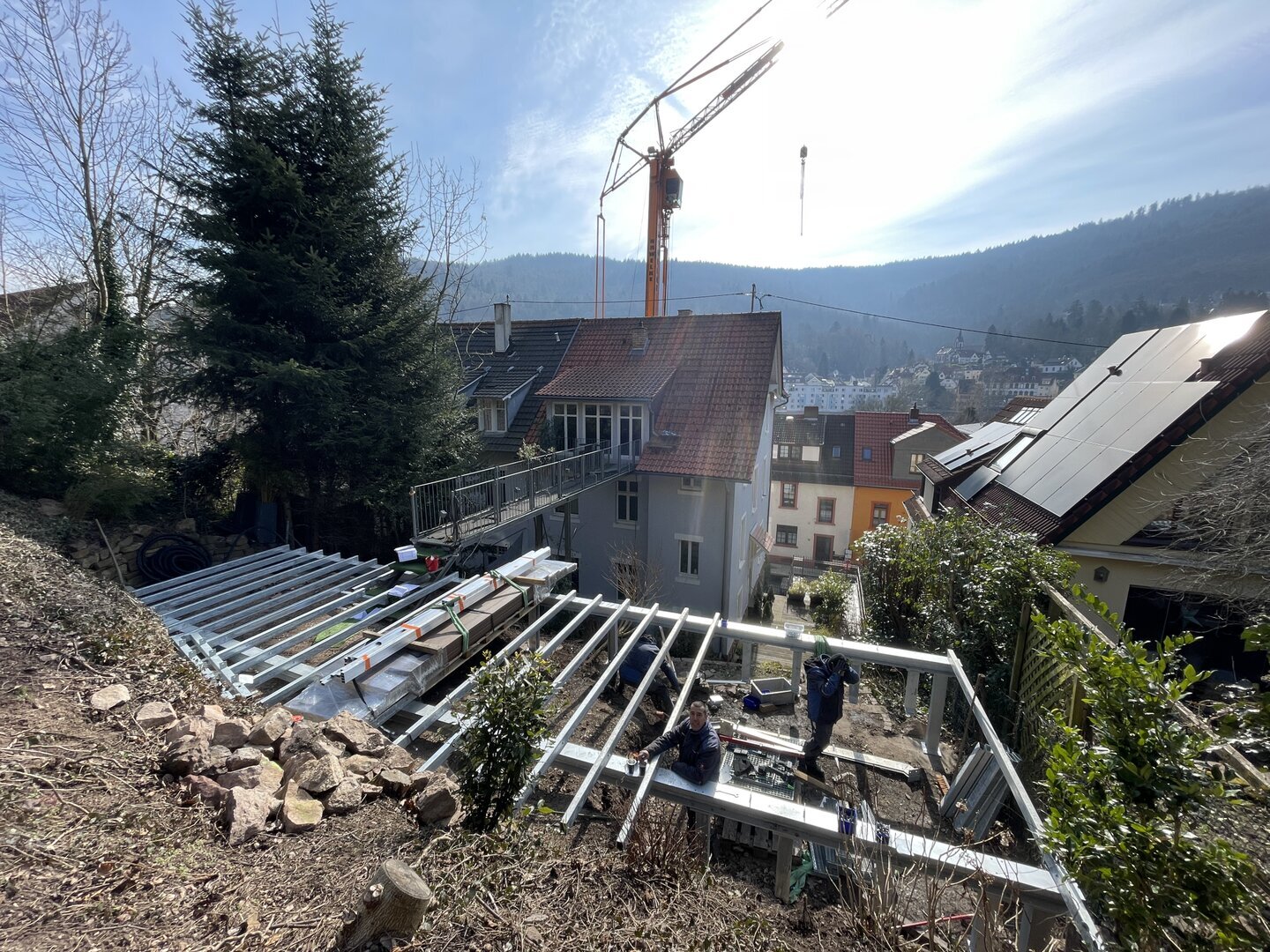 Kunde S. aus Ziegelhausen hatte den Wunsch, seine Terrasse nicht nur zu erneuern, sondern auch zu vergrößern. Die Herausforderung dabei: Die Terrasse lag an einer Hanglage, sodass das benötigte Material nur mit einem Kran transportiert werden konnte.